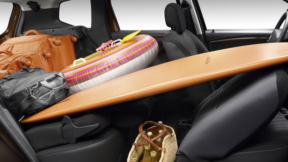 Avec les sièges arrière rabattus la capacité de stockage augmente à 1636 litres, et vous pouvez transporter des objets allant jusqu’à 2,65m lorsque le siège passager est rabaissé.