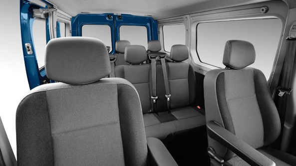 Master Combi associe fonctionnalité et confort avec une finition améliorée de l'intérieur. Les passagers disposent de sièges (munis d'appuis tête), avec un espacement aux genoux de plus de 65 cm, de dossiers inclinables à 20°, ainsi que l'éclairage et l'aération individuelle...